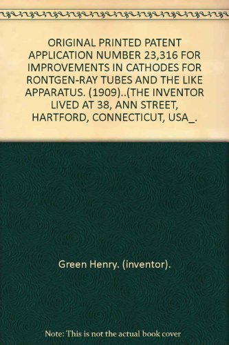 PDF ORIGINAL PRINTED PATENT APPLICATION NUMBER 23,316 FOR IMPROVEMENTS IN CATHODES FOR RONTGEN-RAY TUBES AND THE LIKE APPARATUS. (1909)..(THE INVENTOR LIVED AT 38, ANN STREET, HARTFORD, CONNECTICUT, USA_. Kindle PDF Kindle Download. › If you are looking to fill your activity book, a book ORIGINAL PRINTED PATENT APPLICATION NUMBER 23,316 FOR IMPROVEMENTS IN CATHODES FOR RONTGEN-RAY TUBES AND THE LIKE APPARATUS. (1909)..(THE INVENTOR LIVED AT 38, ANN STREET, HARTFORD, CONNECTICUT, USA_. PDF Kidle PDF Download Online I recommend to you.
